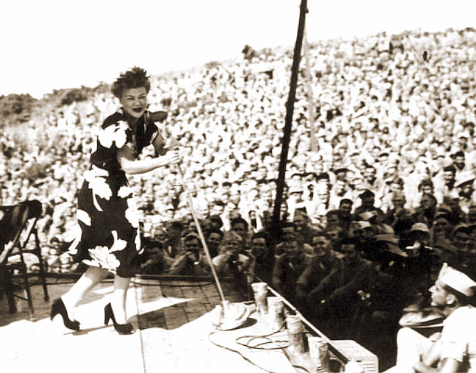 To GIs of World War II, she was as familiar as V-mail. She reached Saipan before the enemy left. She asked her audiece, in the voice from home, "What'll I sing fellas?" And she sang until her voice faded to a whisper. 1944
